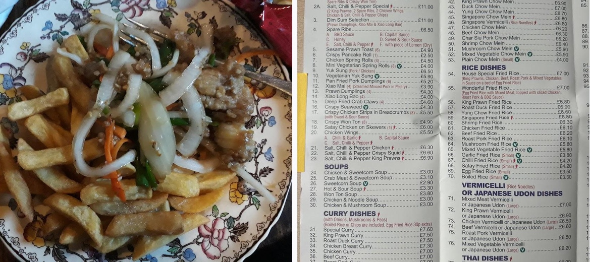 First time order chicken curry and salt and pepper chicken with salt and pepper spare ribs 🤩good size portions it will be my number one Chinese now lovely and tasty definitely recommend